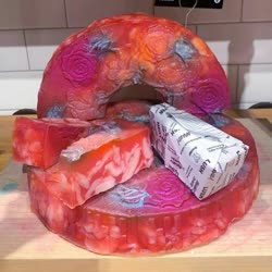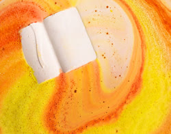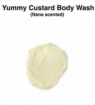 Gummy bear shower jelly: coconut milk, mango juice, buchu oil, cardamom oil, litsea cubeba, sweet orange oil.